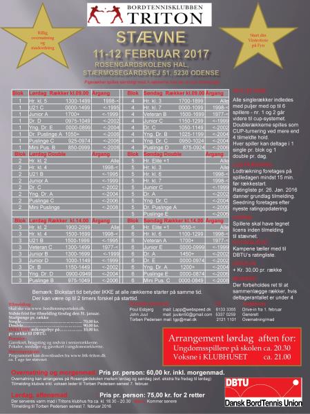 2017 uge 2 vil der blive åbnet op for tilmelding til Btk Tritons stævne der er afholdt siden 1981 og...…